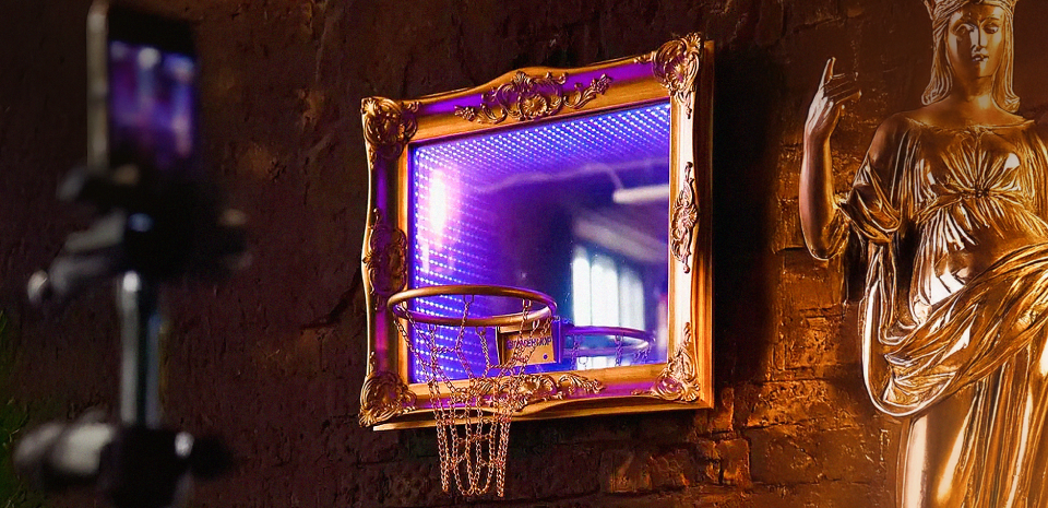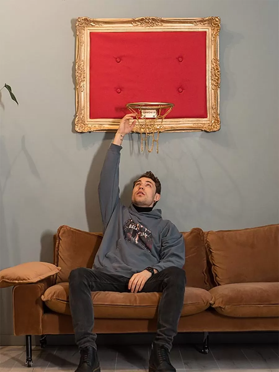 Show off your ultimate fandom with this collection of framed basketball hoops. Each unique piece is framed in an oversized Baroque style frame with a leather backing, giving the ultimate sport the royal treatment. This collection is sure to be a conversation starter among guests.